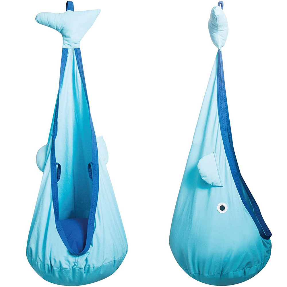 Підвісне стельове крісло у вигляді блакитного кита було придумано для маленьких діток від трирічного віку - справжнє видовище в кожній дитячій кімнаті! Під його гігантським плавником вони можуть мріяти, читати, грати і обійматися, скільки душі завгодно.